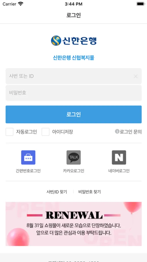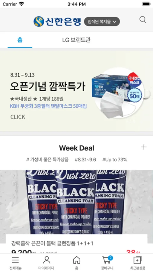 특가 상품과 노벨티를 판매하는 '신한은행 신협복지몰'입니다.