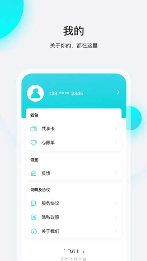 全新升级的飞行卡,专注机票领域、和会员卡共享模式,将会员卡机票旅游攻略集合一体。打造一个移动的钱包,飞行的优惠券概念。