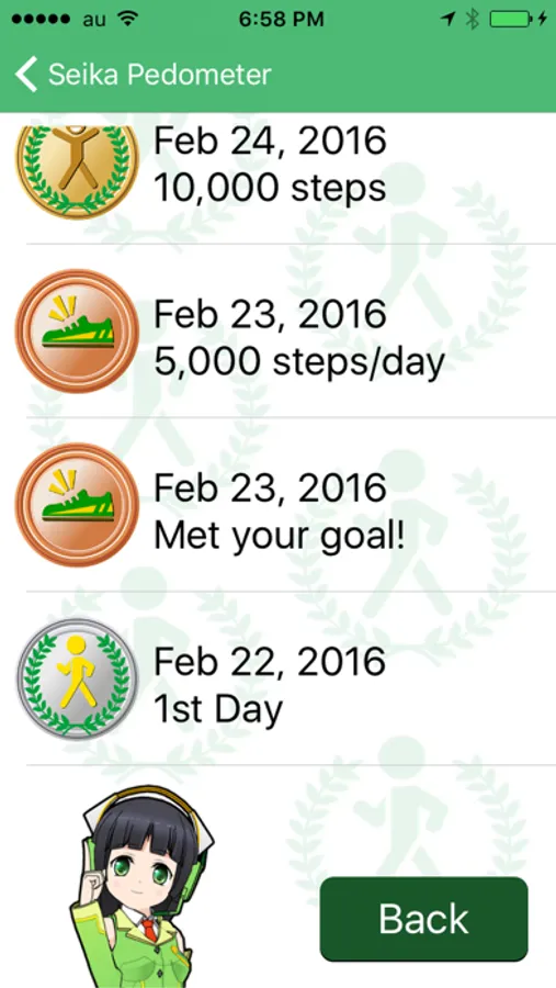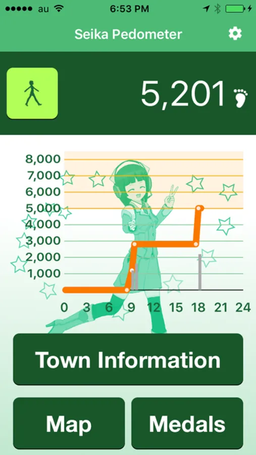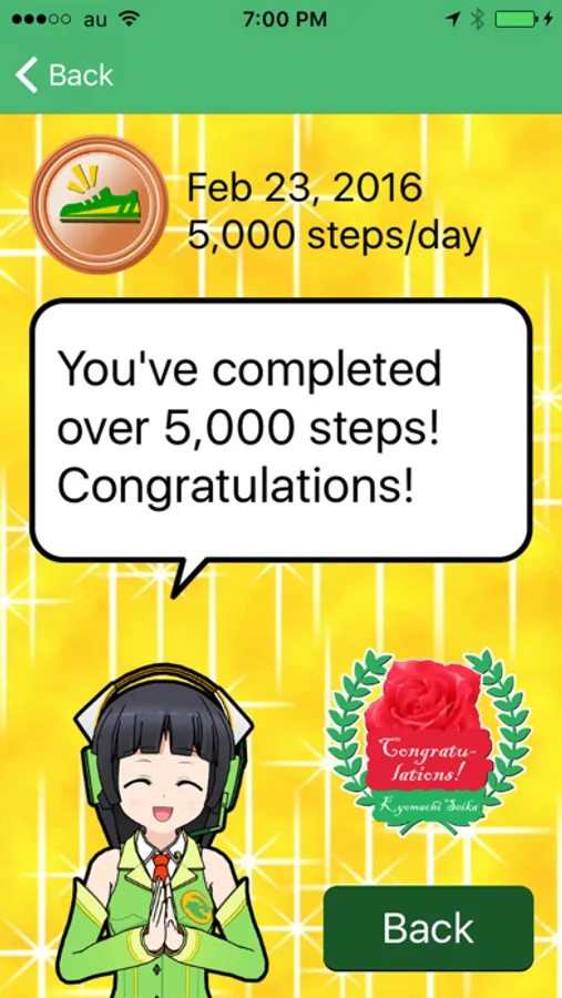 This pedometer application is easy to view and to use. You can easily check your daily progress on the graph display. And ou receive a commemorative medal from the Seika Town public relations character "Seika Kyomachi" for each goal met.