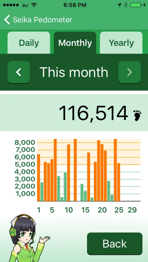 - Tap on the graph to change the view to daily, monthly, or yearly. The number of steps you've taken can be easily checked on the graph.