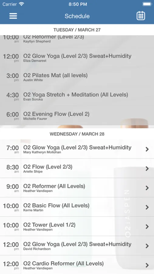 Download the O2 Aspen Day Spa App today to plan your classes! From this mobile App you can view class schedules, view ongoing promotions, as well as view the studio’s location and contact information. You can also click through to our social pages! Optimize your time and maximize the convenience of signing up for classes from your device! Download this App today!