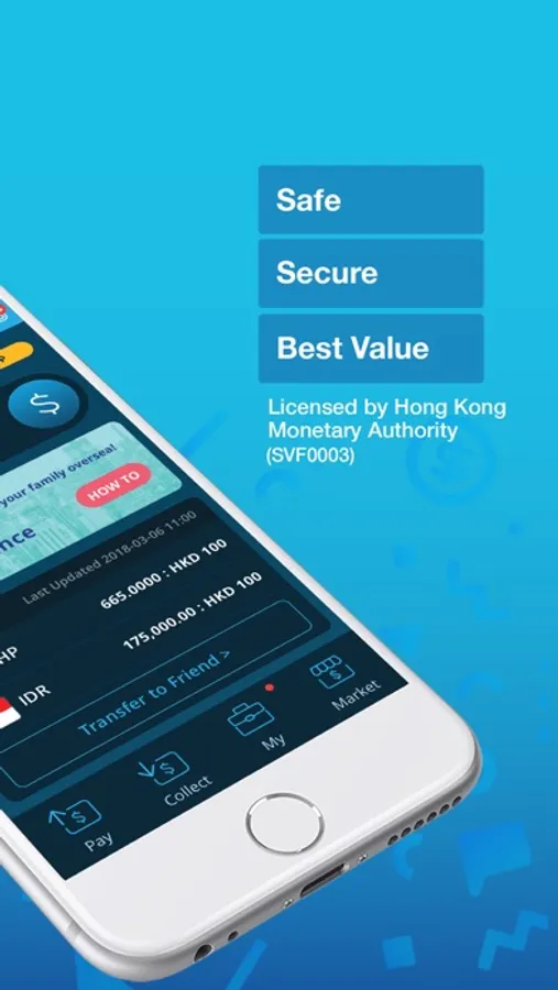 Transfer money to designated overseas bank account or 183,000+ cash pick-up outlets globally across 13 countries, pay bill (local and overseas), top up prepaid SIM, all at fingertips!