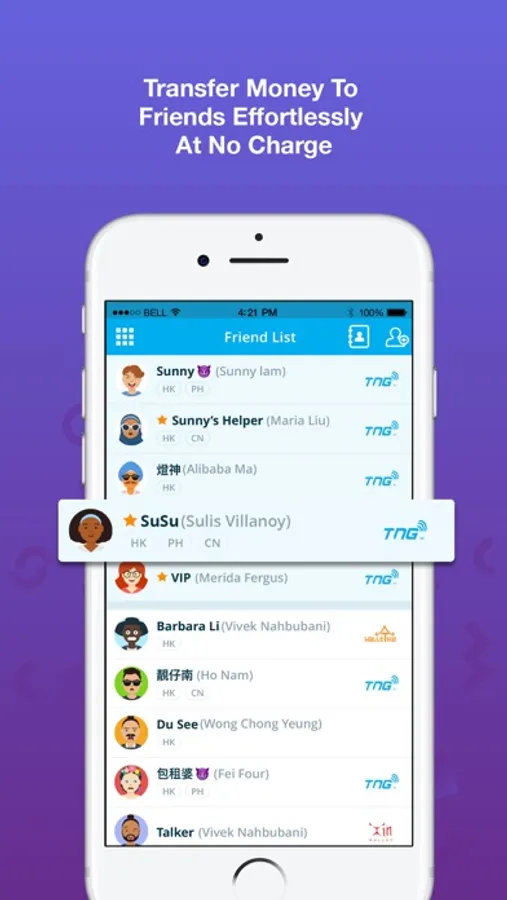 Stay connected with TNG to send instant messages and call friends anytime, anywhere.