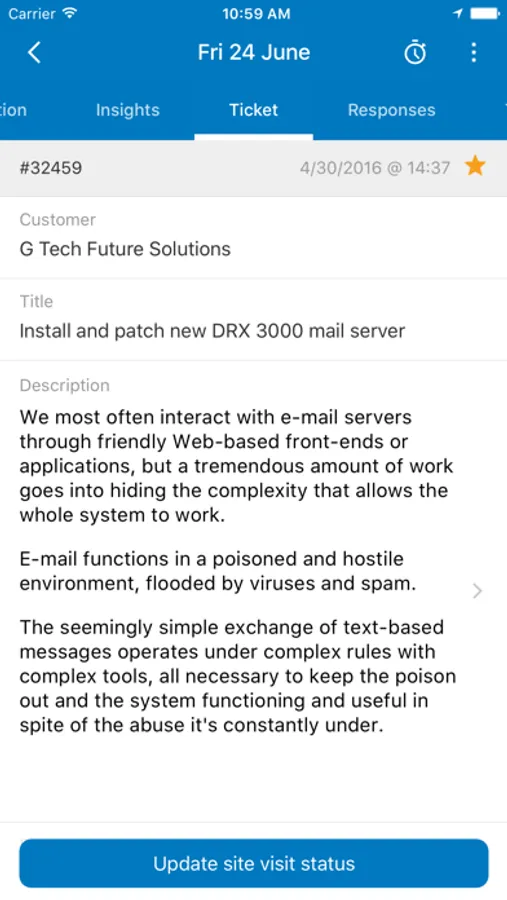- Sign off tickets with digital signatures and add photos to ticket comments.