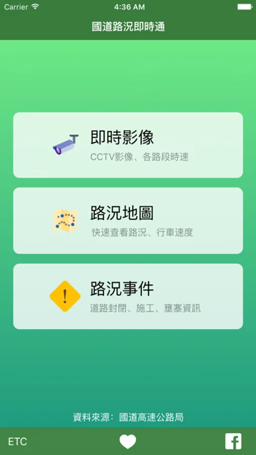 「國道即時通」即時呈現全台國道高速公路、以及橫向快速道路路況資訊