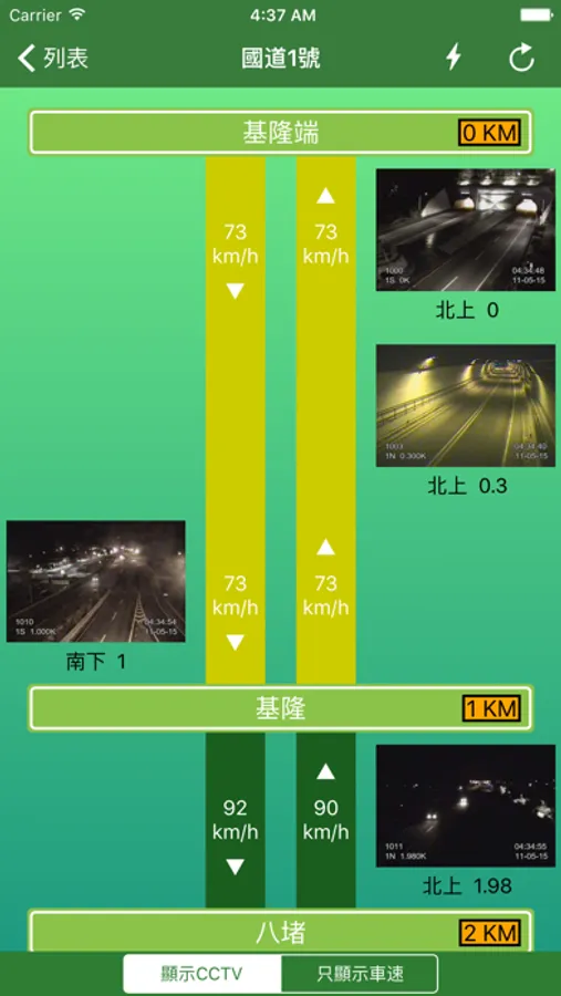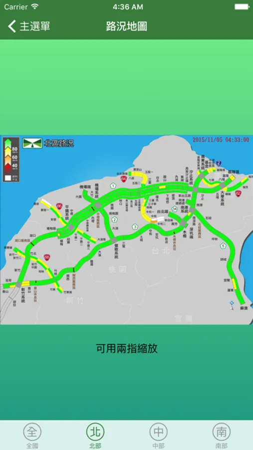 「路況地圖」全台及北中南分區國、快速道路行車速度,一目了然