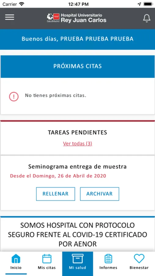 Esta app está destinada a los pacientes del Hospital Universitario Rey Juan Carlos.