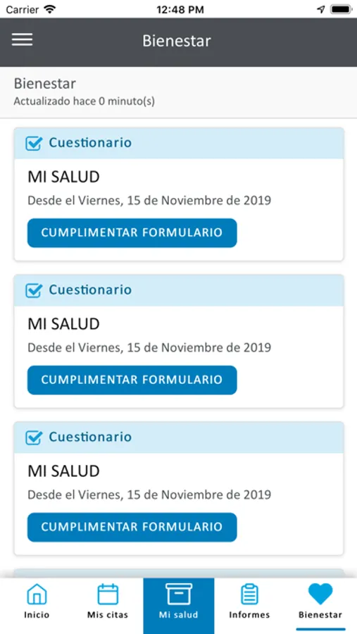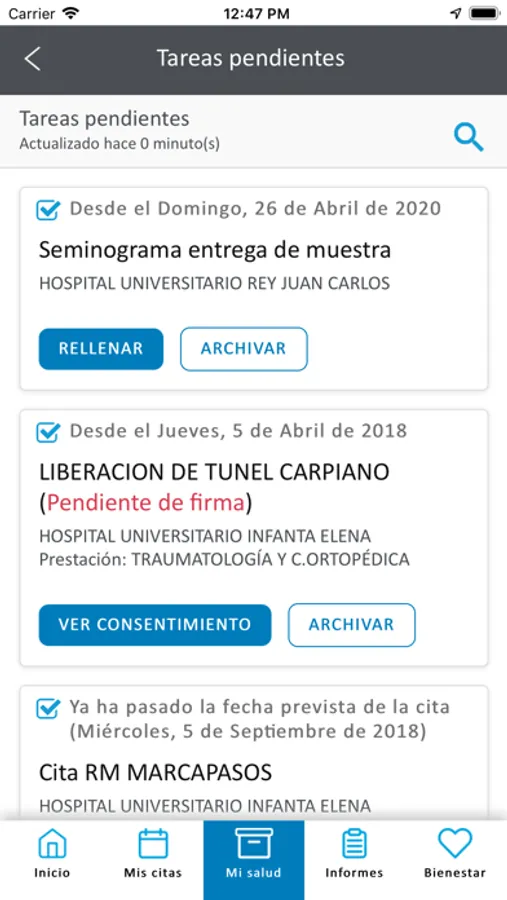 o Consultar sus informes clínicos e históricos de formularios realizados pudiendo filtrar los resultados por fecha, o especialidad entre otros.