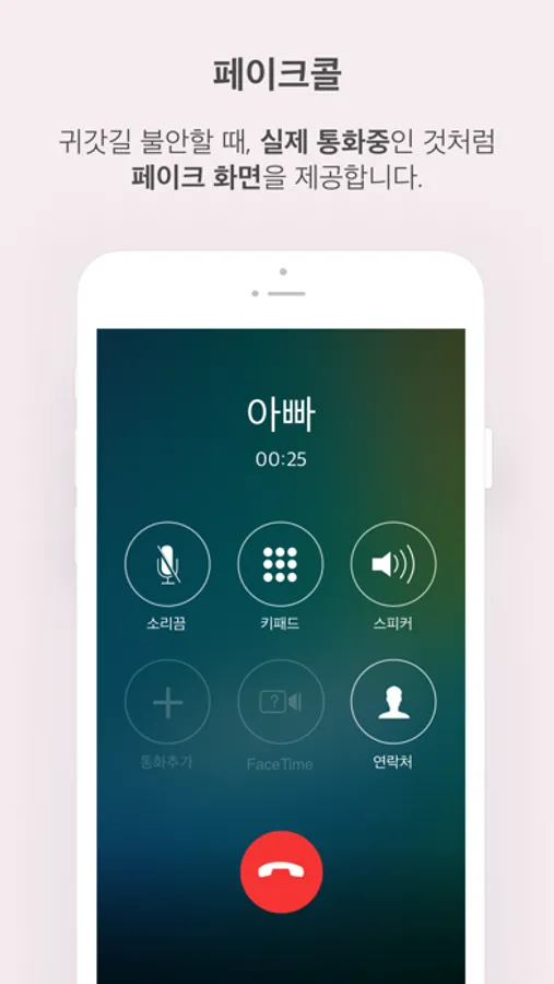 귀갓길 불안할 때, 실제 전화가 온 것처럼 통화중인 화면 제공