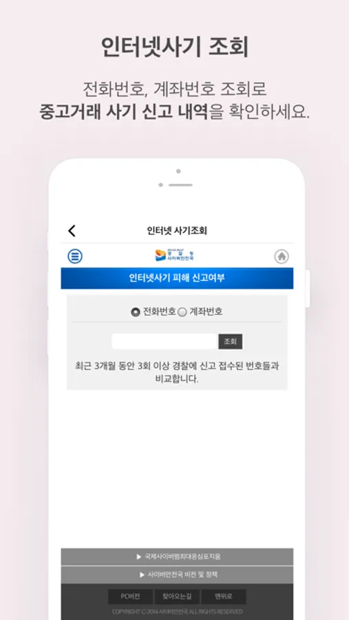 전화번호, 계좌번호를 조회하여 중고거래 사기 신고 내역 확인(경찰청 연동)