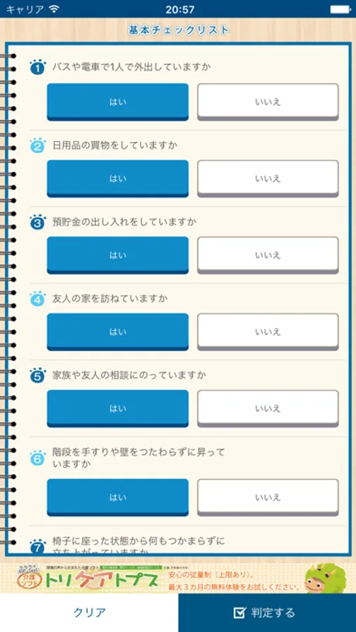 介護保険事業所向け介護請求ソフト「トリケアトプス」で好評をいただいている基本チェックリストがアプリになりました。