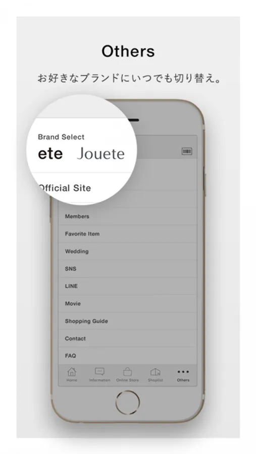 お好きなブランド(ete/Jouete)に切り替えてご利用いただけます。