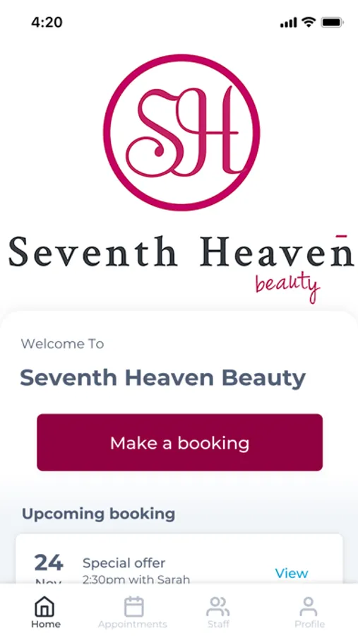 The Seventh Heaven Beauty app makes booking your appointments and managing your loyalty points even easier. You're just a few taps away from feeling good and looking great!