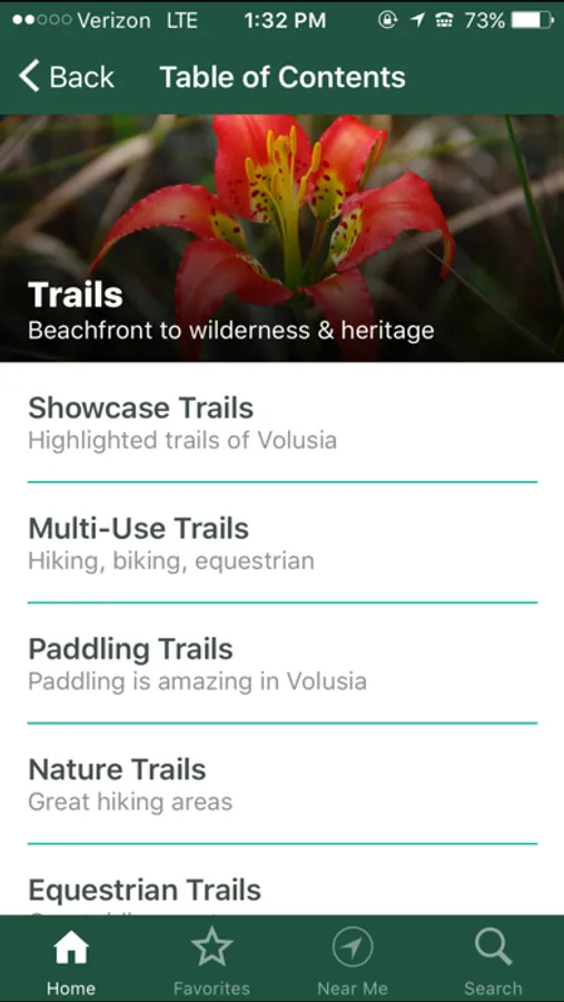 Near Me - This feature lists all sites closest to the user. Obviously, this works best when you are in Volusia County.