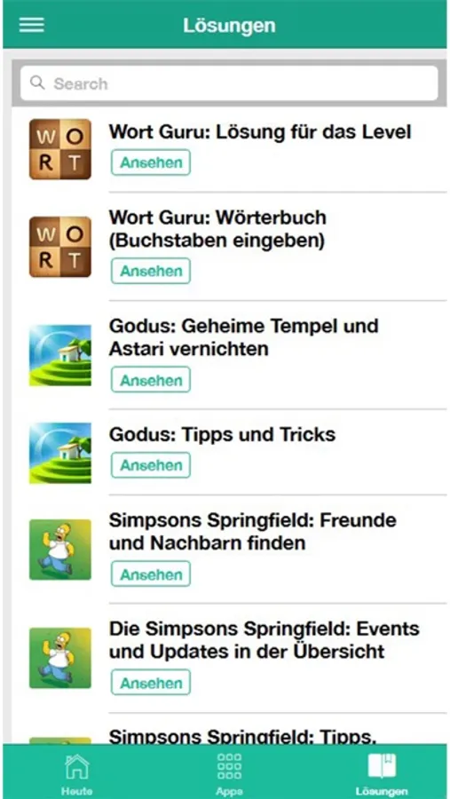 - Lösungen zu beliebten Spiele Apps direkt aus der App heraus aufrufen