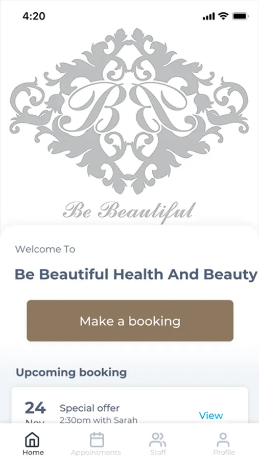 The Be Beautiful Health And Beauty app makes booking your appointments and managing your loyalty points even easier. You're just a few taps away from feeling good and looking great!