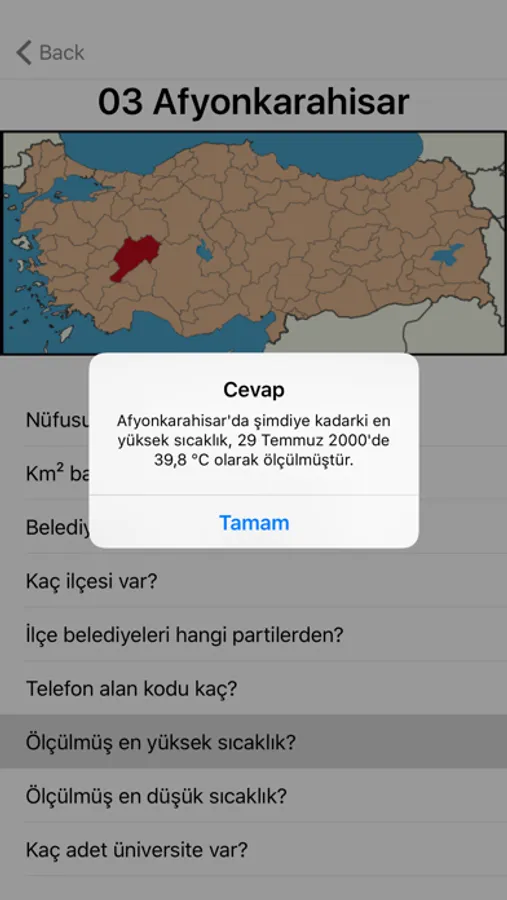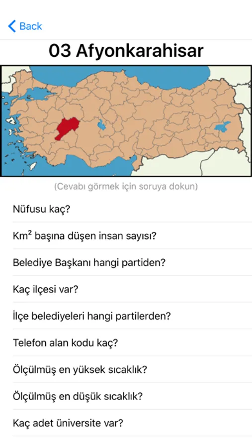 Plaka kodunu seç, Göster'e bas, hangi il olduğunu gör ve o il hakkındaki soruları doğru cevaplamaya çalış.