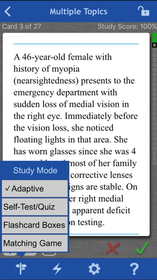 Free initial download of the app presents three clinical case studies and detailed diagnoses in each subject area with a total of 150 questions available through in-app purchase. Choose from four study modes to assess your knowledge level and target weak areas as you go. Create customized quizzes to track your progress and even turn studying into a game with the concentration-style Matching mode.
