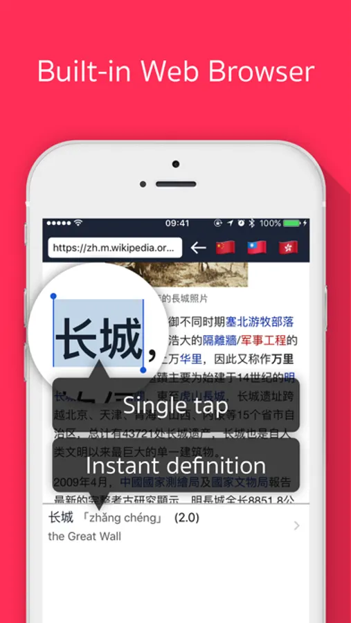 • Web Browser: browse Chinese web pages & tap on Chinese characters to instantly get an English definition.