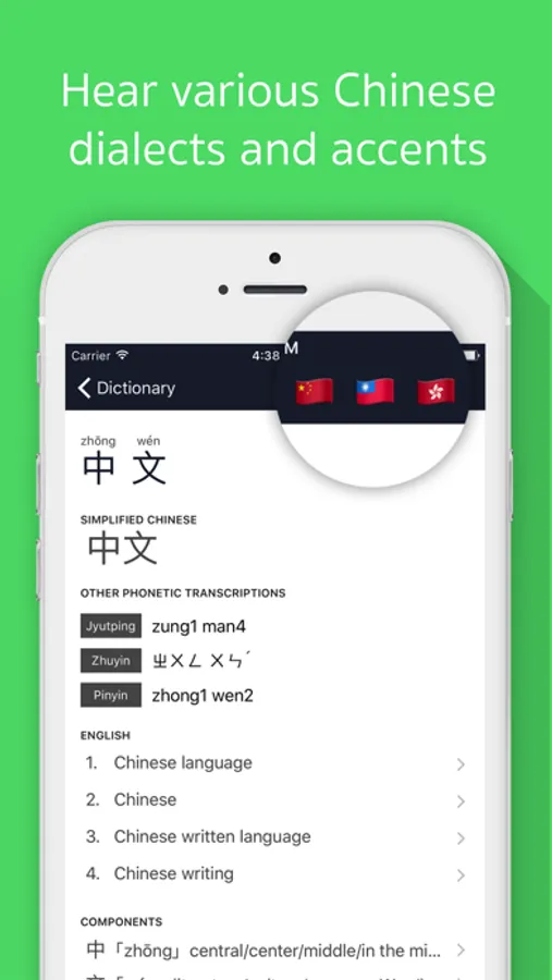 • Text-to-Speech: easily listen to Chinese/Taiwanese Mandarin and Cantonese pronunciations.