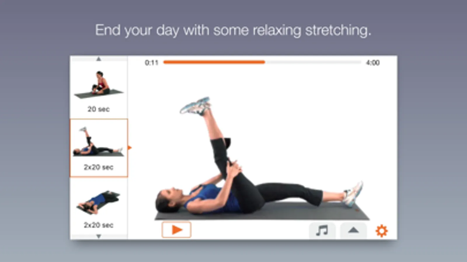 Relaxation Stretching - A busy life is a stressful life and too much stress can really impact your sleep (which makes your stress even worse the next day). Take a few minutes at the end of the day to wind your body down and set yourself up for a terrific night's sleep. The workouts start sitting and then move to a lying position so you can do them in your bed to really help you relax.