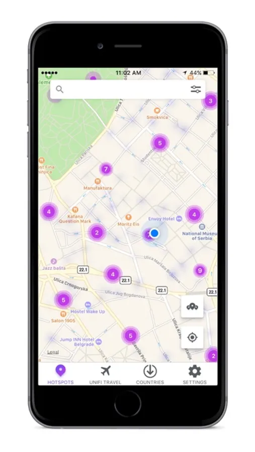 Locate and view UNIFI and UNIFI Travel locations and connect to hotspots. The application allows you to view the locations of all UNIFI and UNIFI Travel hotspots, as well as access to over 60 million UNIFI Travel hotspots in 120 countries world-wide.