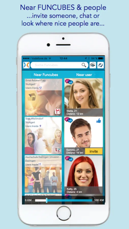 You’re about to be in a different city or on vacation? “Travel virtually” to other cities or countries with your app, visit FUNCUBES, look who’s there. Perhaps you can already invite someone to a FUNCUBE for tomorrow.