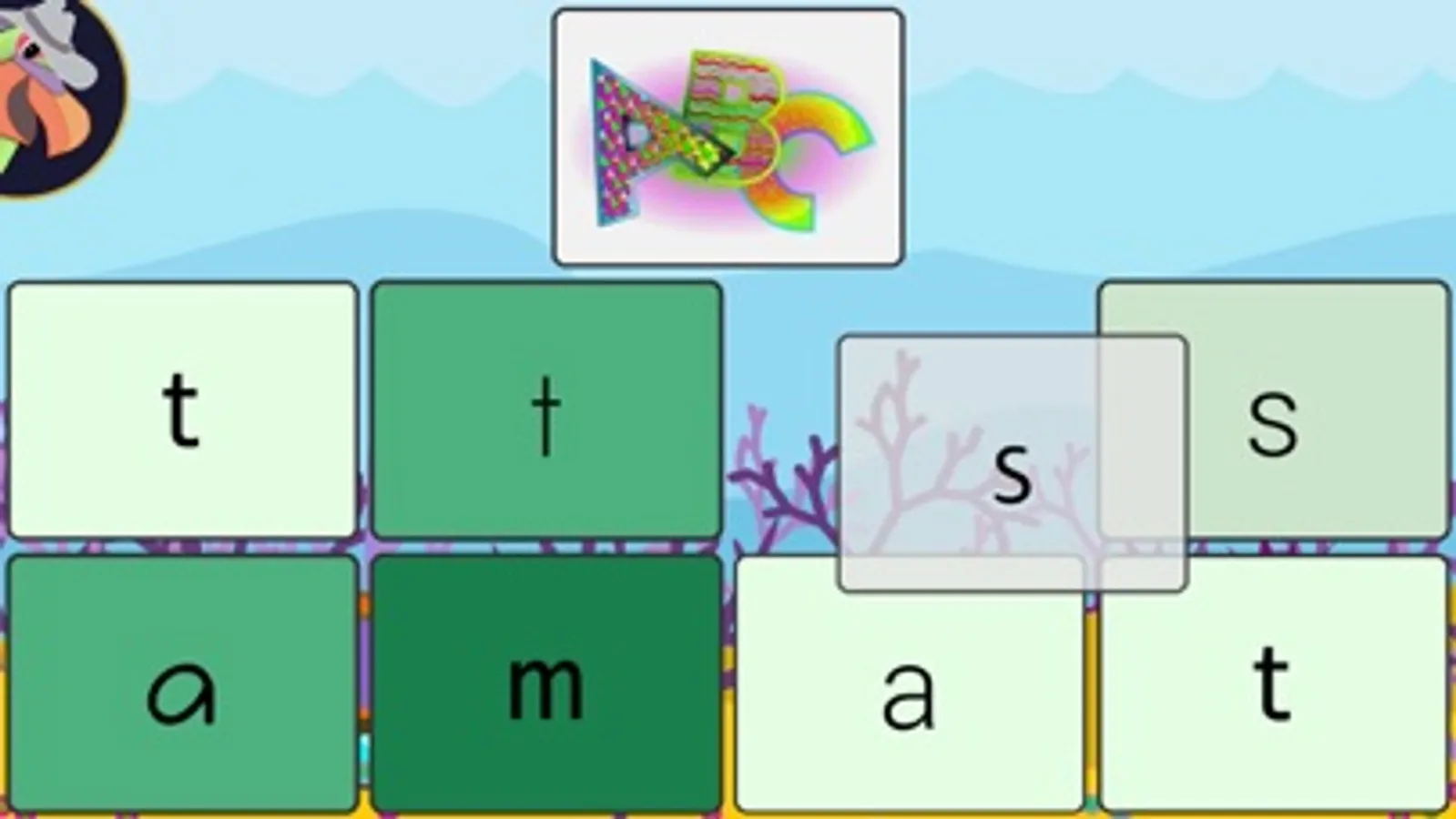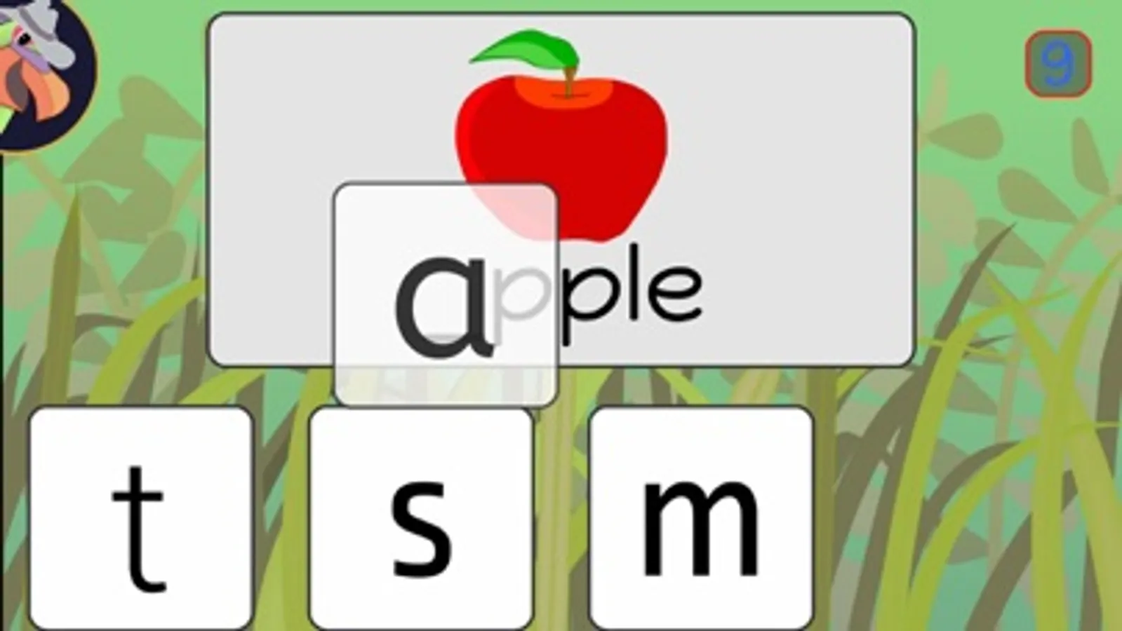 4 - What's Missing: An image and its word are shown with the target letter missing from the beginning, middle or end of the word. Select the correct letter or letter sound and drag it into place.