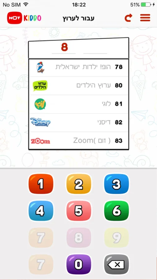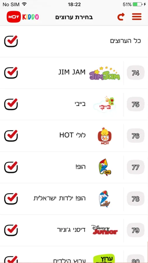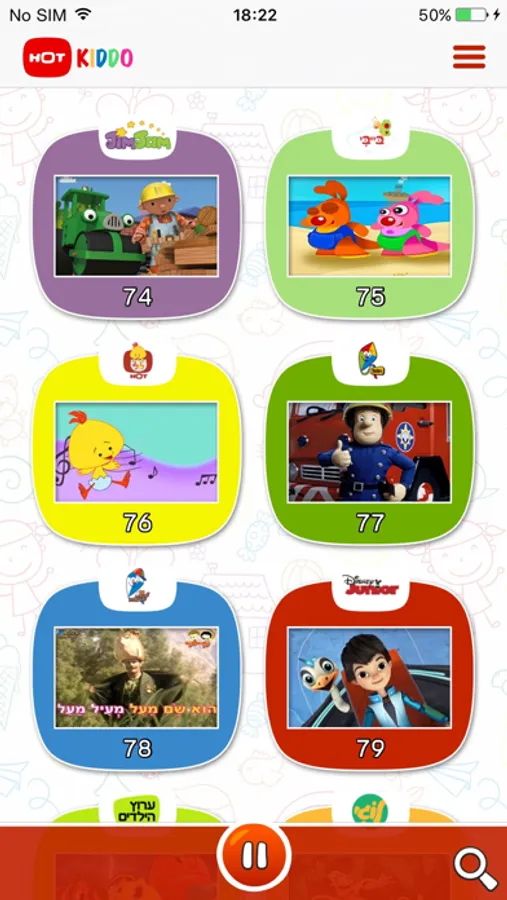 HOT KIDDO מציעה את האפשרות להציג ולנווט בקלות בין ערוצי הילדים השונים ורק בין ערוצים המתאימים לילדים קטנים.