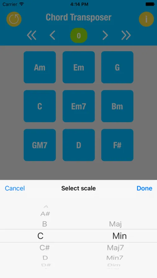 With the Chord Transposer App, transformation of chords is very easy now . You just need to select the chords that you use. You can increase or decrease chords a half or a full tone by pressing right or left button. In this way, the chords on the tone that you want will be achieved in a practical way. We hope you like it.