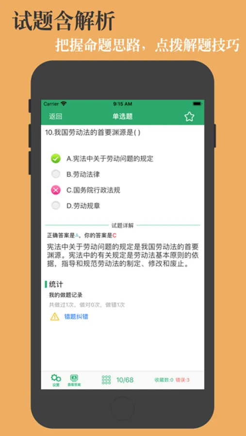 6、收藏夹:可在练习过程中自行收录题目到收藏夹,形成自己的小题库,针对性练习,提高通过率。