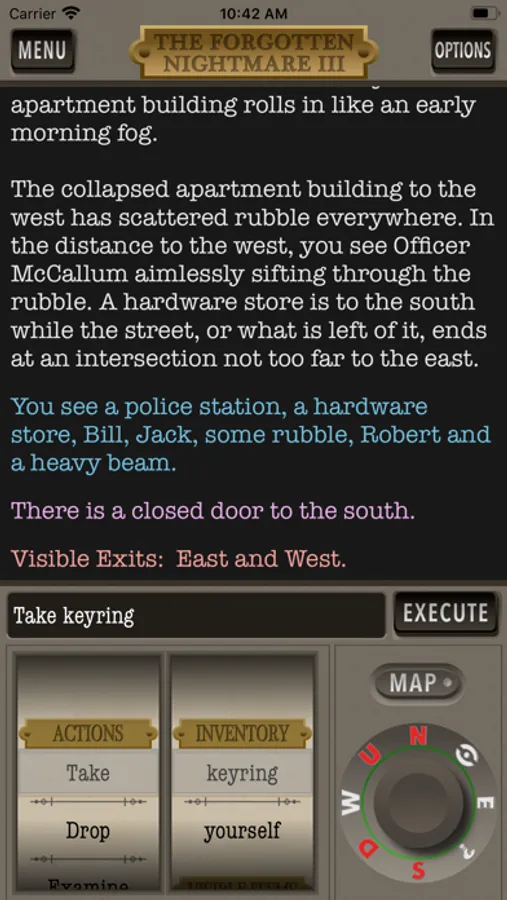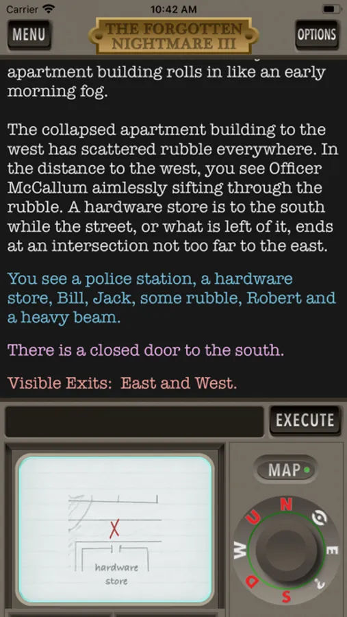 Chapter 3 is the third chapter in The Forgotten Nightmare text adventure game series. In Chapter 1, you awaken after an accident with amnesia, hanging upside-down by your seatbelt. After escaping the destroyed van you explore a desolate small town that has experienced a series of strange disappearances. Encountering two inhabitants, the three of you flee to a nearby town. In Chapter two, your two new friends are arrested for unknown reasons and you focus on exploring this new town and free your companions. After a massive earthquake strikes, you gain a fourth companion. But where will the four of you go? Elsewhere in the world, chaos reigns as natural disasters, wars, and plagues increase exponentially. Markus Bernhoft takes the stage to lead a changing world that must band together to face its new challenges.