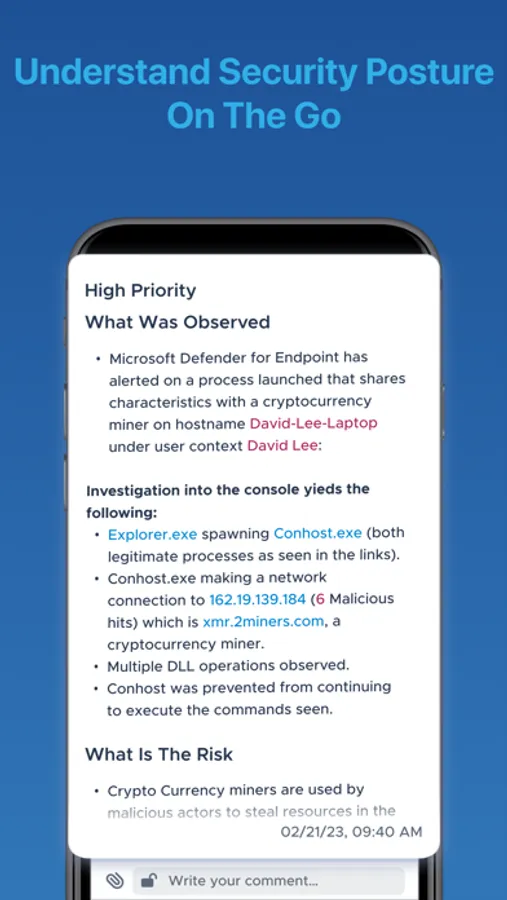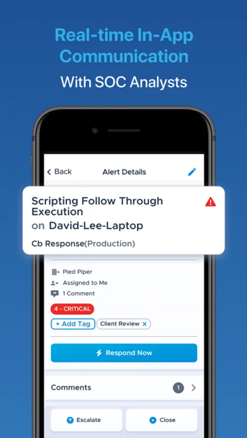 Critical Start MobileSOC® has revolutionized incident handling, secure communication, and on-the-go connectivity for security teams. MobileSOC empowers customers with unparalleled visibility, enabling effective incident management, secure communication, and seamless connectivity. Its real-time incident alerting capabilities ensure immediate alerts on mobile devices, facilitating timely awareness and proactive decision-making. MobileSOC also enables the swift containment of infected devices, safeguarding your environment.