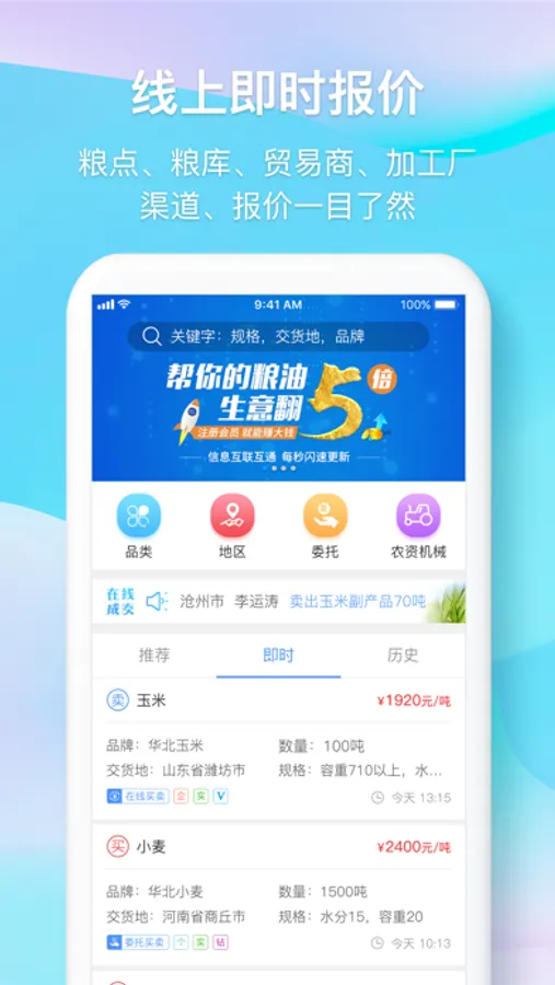 该平台涵盖了大豆、玉米、小麦、豆粕、豆油等各个行业。主要包括信息发布、信息查询、投诉建议、通知管理、信息接收控制、密码修改、行业资讯、在线客服等功能。用户通过该平台可以迅速发布、实时查看商品买卖信息;足不出户,弹指间便知天下大宗商品行情信息。
