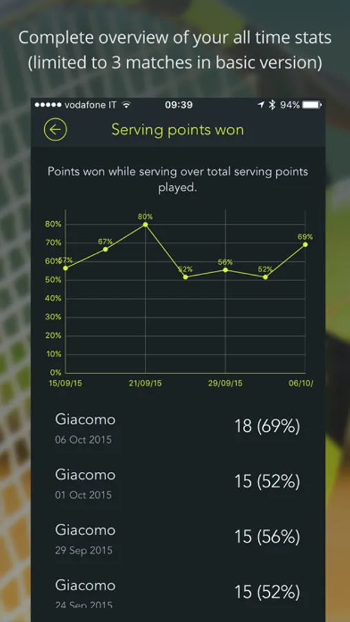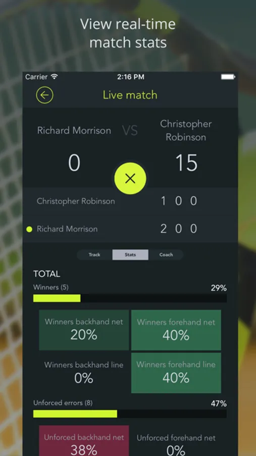 Track your game, point by point, in just two taps. After just one set, Tiebreak has started to learn your game and can begin to recommend training. The more you play, the better the data and the smarter Tiebreak gets.