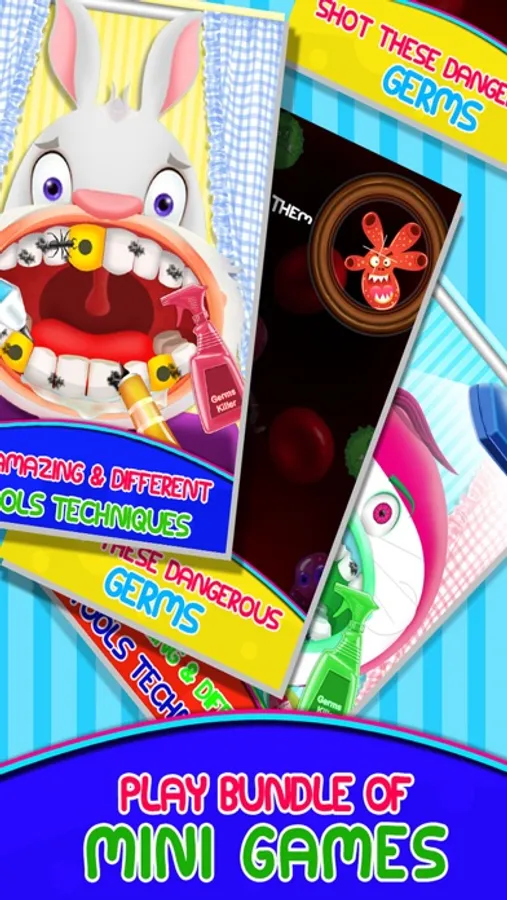 Look at your TIGER, CAT, MONKEY and DORA all are waiting for you, please come play, shine their teeth, help them to get rid of their pain, KILL all those GERMS, Get highest score,