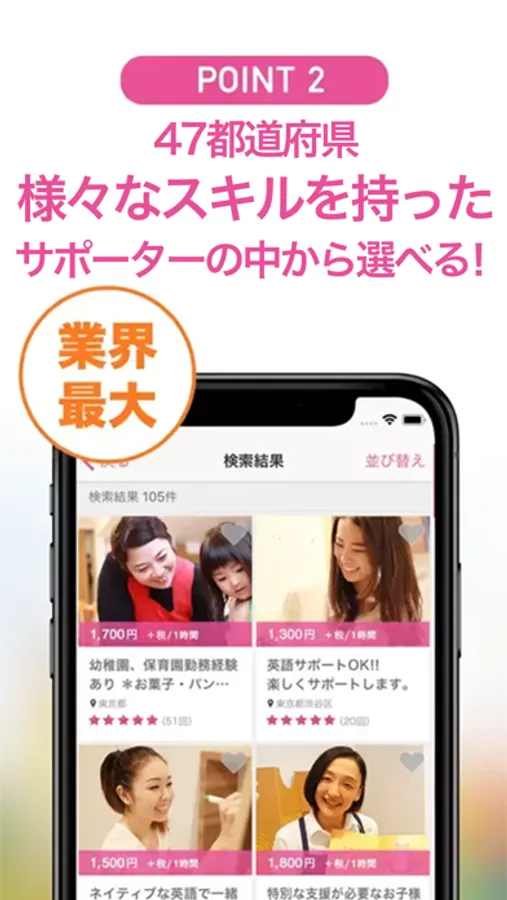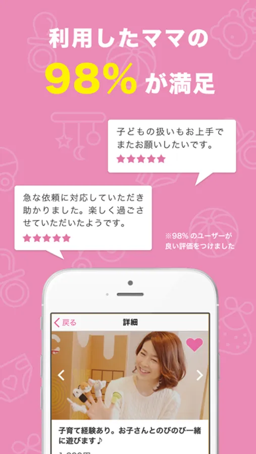 身元・経歴確認の後、面談と研修をクリアしたベビーシッターだけが登録されています。