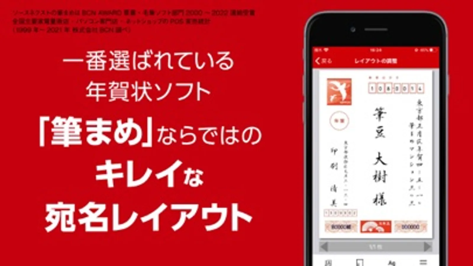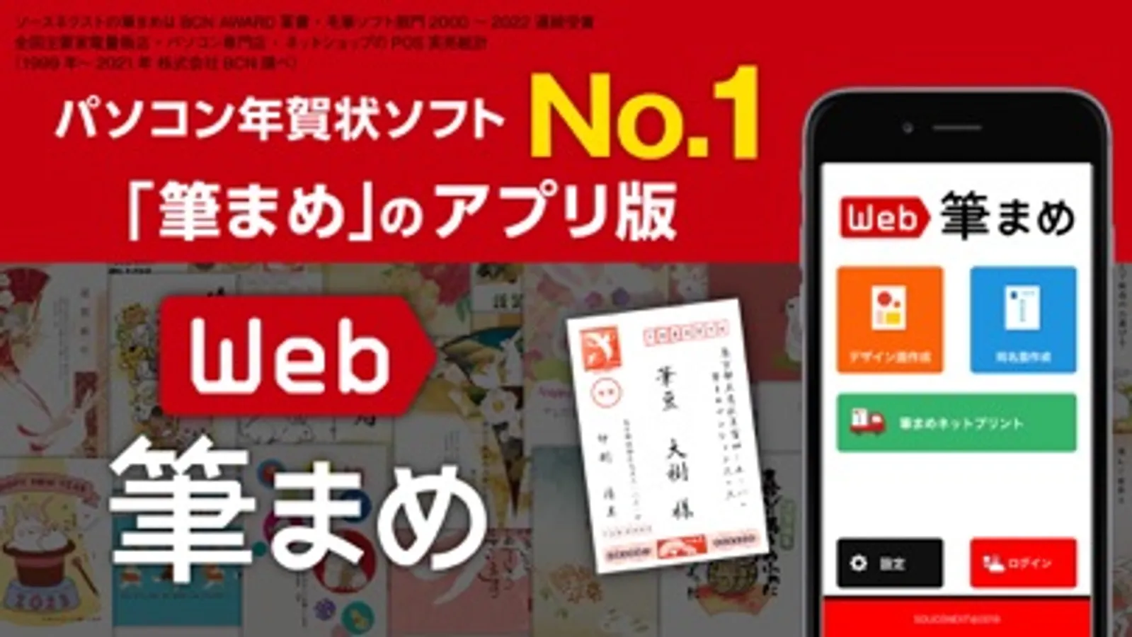 ソースネクストの「筆まめ」は販売本数23年連続第1位の年賀状作成ソフトです。アプリ向けに機能改良し、使い勝手のよさを追求しました。
