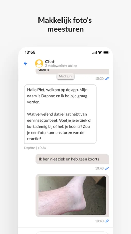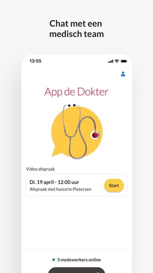 Vragen over je gezondheid? Stel ze via App de Dokter. Óók ’s avonds en in het weekend. Chat met een medisch deskundige en krijg binnen 1 uur antwoord. En als het nodig is, plan je binnen 1 werkdag een videoconsult met een huisarts. En goed om te weten: je gegevens zitten veilig achter een pincode.