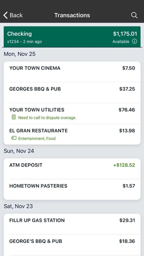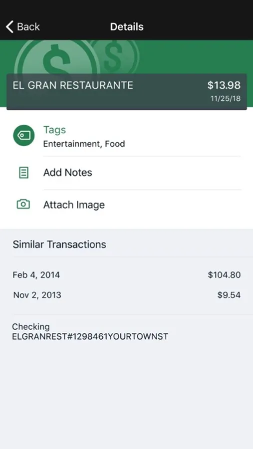 Add Tags, Notes, Images & Geo-Information: By enhancing transactions with custom tags, notes or photos of a receipt or check, you have the ability to stay organized and find exactly what you’re looking for when searching through your finances.