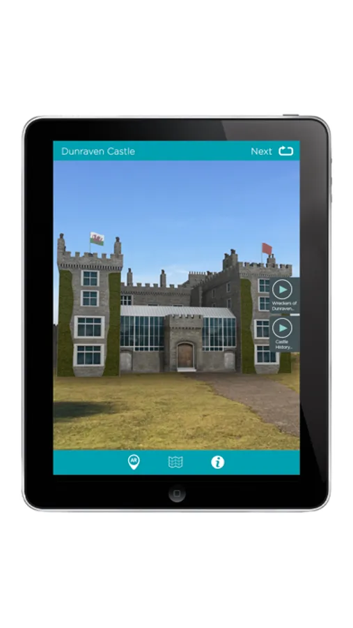 See the magnificent Dunraven Castle (AR2) rise from its ruins, listen to an audio description then watch two videos, the first describing the history of the house and its inhabitants, the second telling the story of the notorious Wreckers of Dunraven. There has been a stone dwelling on the site at Dunraven Bay since the 12th century. Many people have lived there over the centuries, each adding their own mark on its architecture and legends. This app will give you an insight into how it changed over the centuries, who lived there and it's eventual fate.
