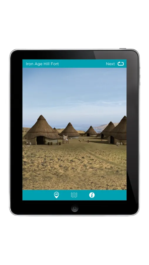 Point your device’s camera at the viewing lectern at a location and watch an Iron Age hill fort, historic castle or unlucky packet boat appear on the landscape beyond the panel.