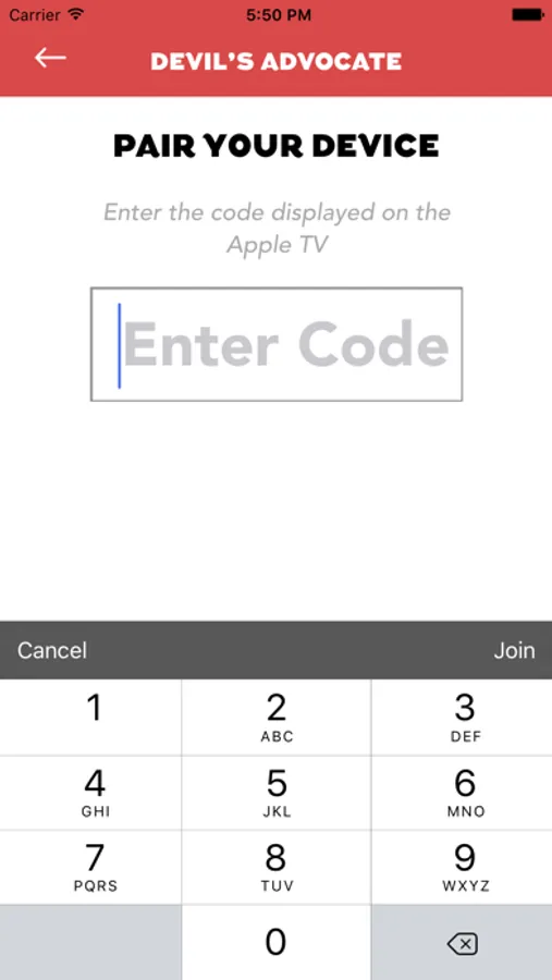 This is the iOS version of the game. This app also requires users to have the Devils Advocate game on their Apple TV. This game requires 4 players to play.
