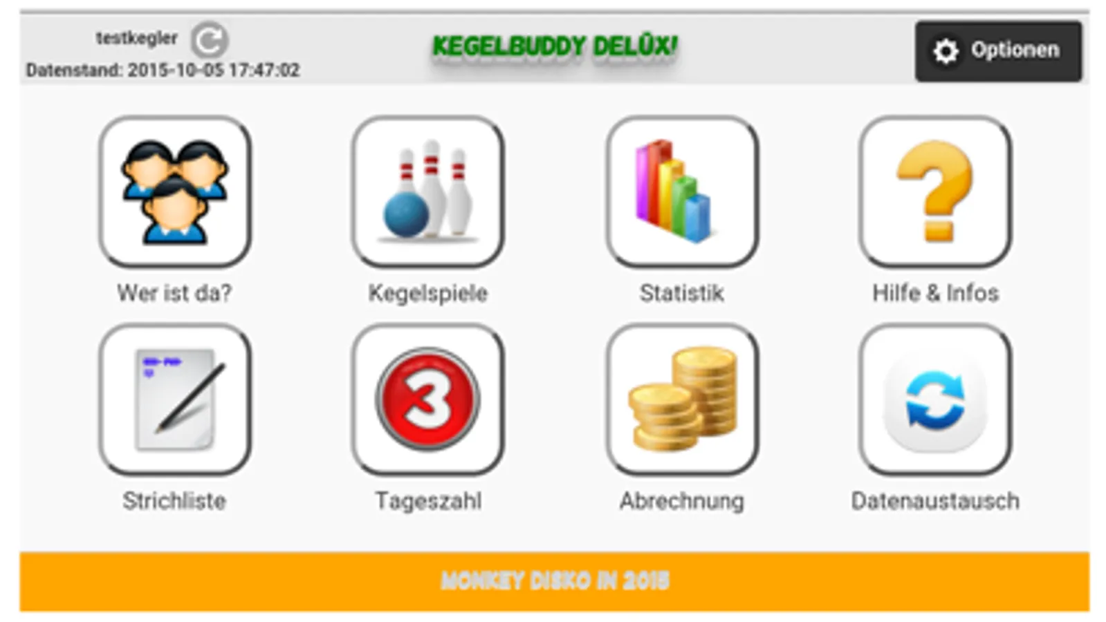 Some of the features: News-ticker (who's in front etc.), Games to look up, guest-bowlers, long-term statistics, individual photos or pictures for the bowlers, drawing of the "bad number of the day", transfer all data between you and your bowling fellows via internet, send payment requests via Mail or Whatsapp and much more.