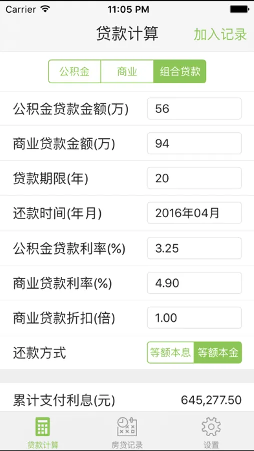 * 支持等额本金