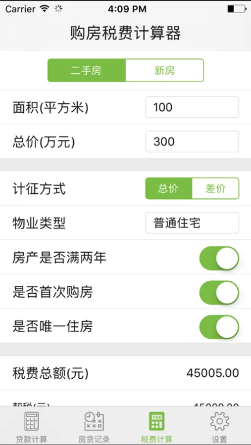 * 支持购房税费计算 ---