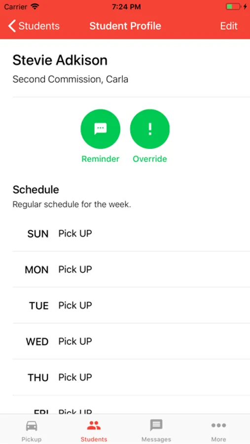 May update student requirements for dismissal for the current day by designate student as absent; having left early; as specifically participating in carpool; specifically participating in a single after school group such as school bus, daycare van, club, tutoring, after care, or something else; or being picked up by an alternate carpool when going home with a friend. [when allowed by school settings]