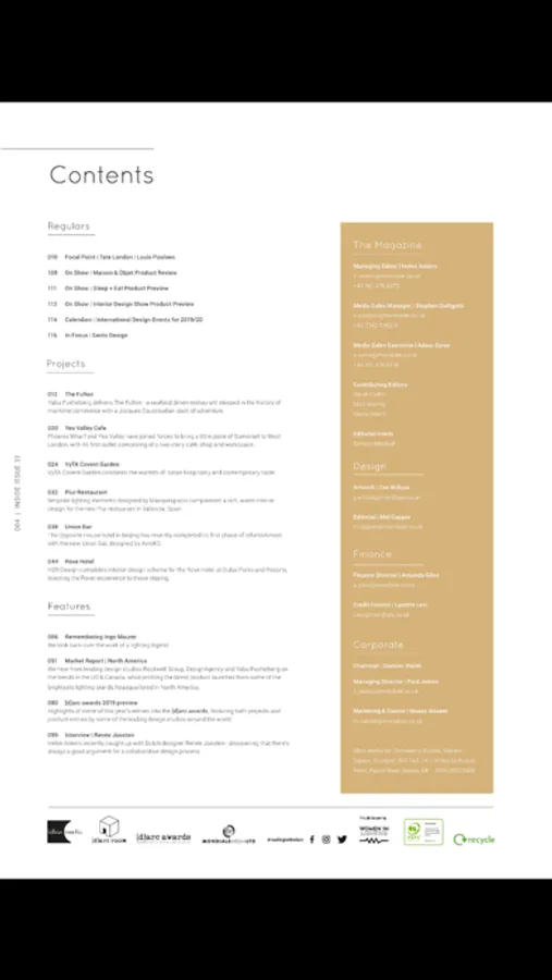 darc is a dedicated international magazine focused on decorative lighting design in architecture and targeted at interior designers, lighting designers and architects. Published six times a year, along with 3d – our decorative design directory – darc delivers insights into projects where the physical form of the fixtures actively add to the aesthetic of a space. In darc, as with sister title mondo*arc, our aim remains as it has always been: to focus on the best quality technology, projects and products and to hear from those at the forefront of creative design.
