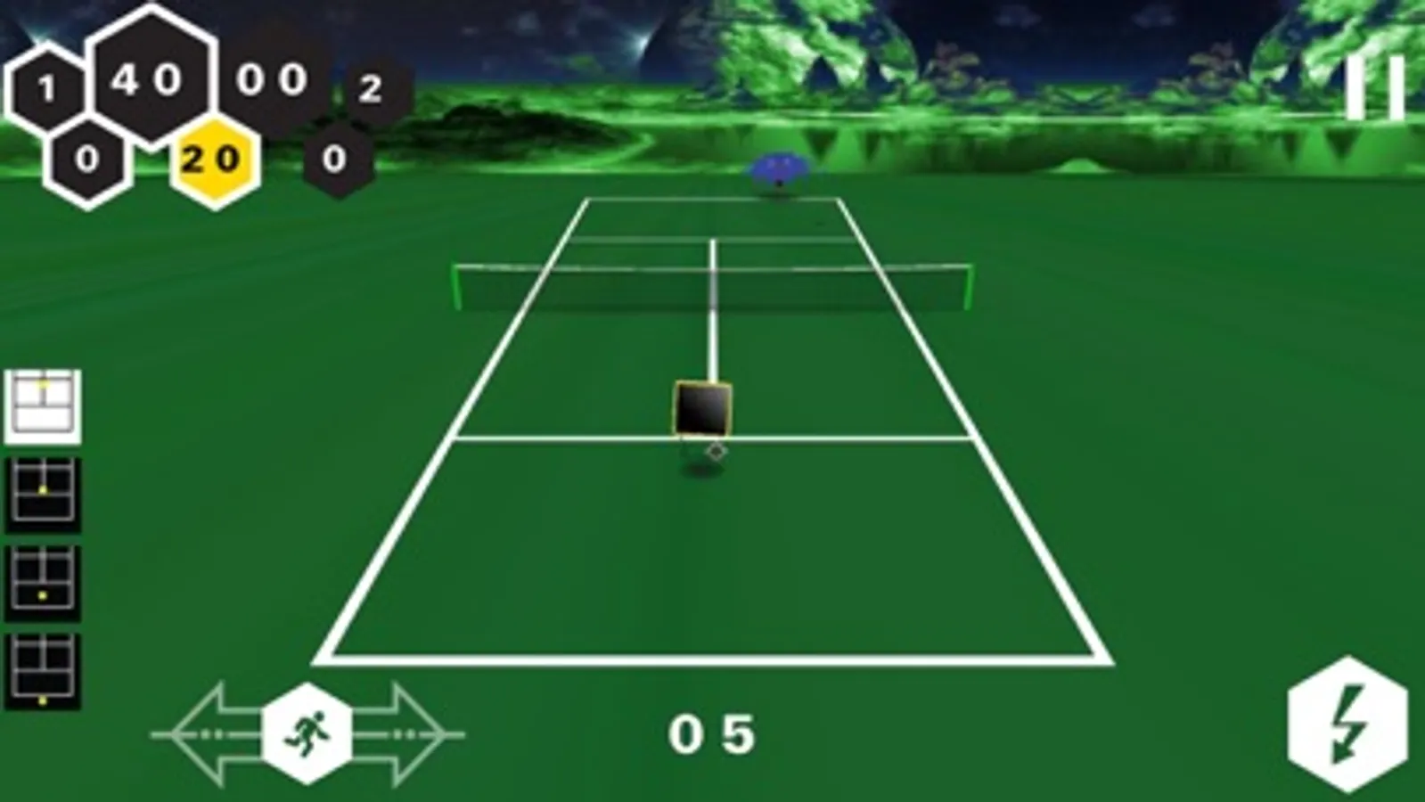 Alien Tennis, game is tennis, location is unknown, somewhere in universe, in Alien Tennis realm. Those evil aliens are your opponents, and they claim that they are best tennis players. Beat all of them and be first in pyramid. Prove them wrong! This simple tennis 3D game has fluid physics and gameplay with fast and simple play controls.