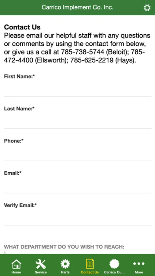 Carrico Implement is a John Deere dealer and was established in 1955 by Paul Carrico. Originally a Minneapolis Moline dealership, the organization grew to add many lines of farm equipment, and finally the John Deere line was added in 1986. The dealership is still a family owned business, now in its fourth generation.